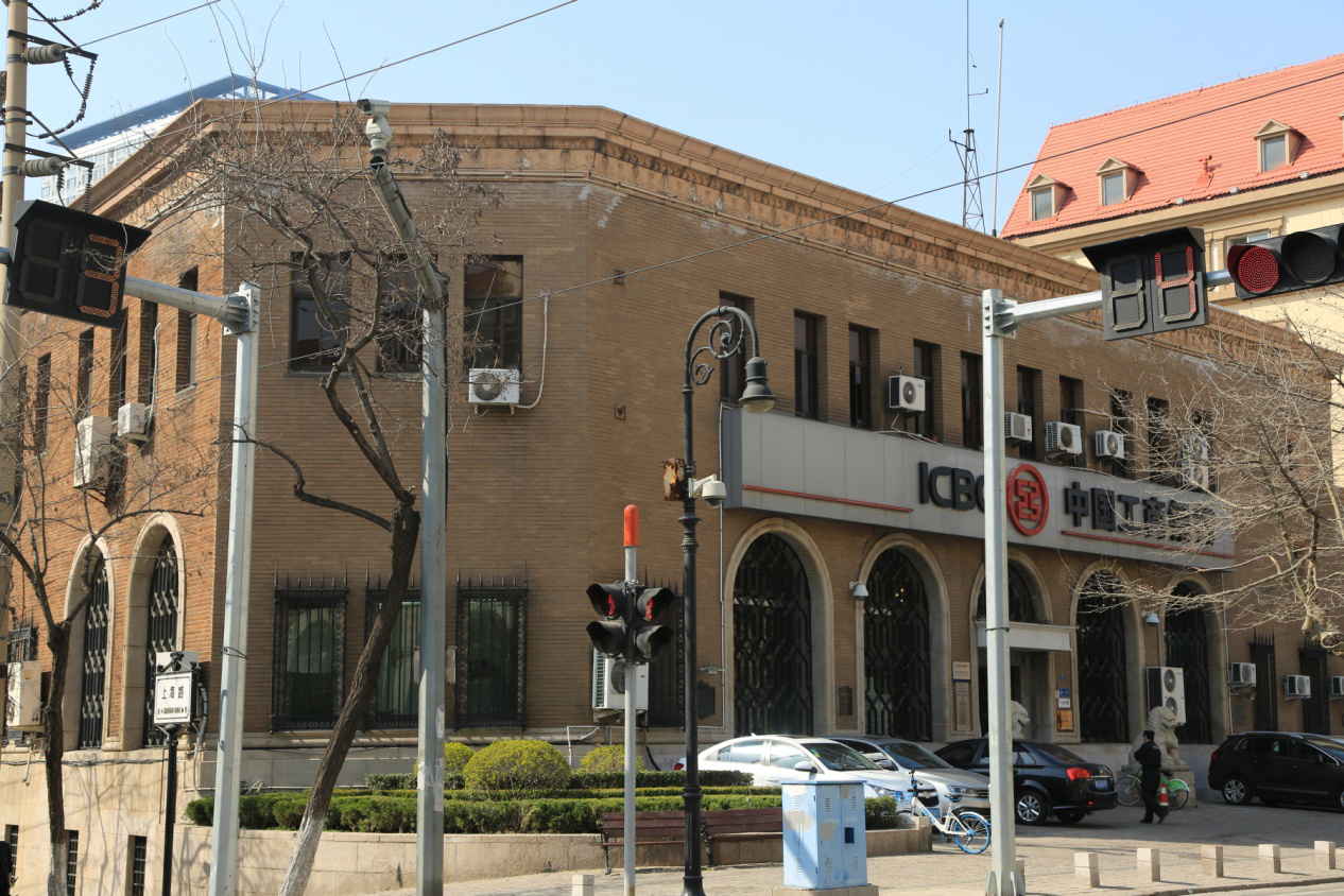 朝鮮銀行青島支行舊址,位于市北區(qū)館陶路12號(hào),由日本建筑師三井幸次郎設(shè)計(jì)。鋼筋混凝土結(jié)構(gòu),總建筑面積2000平方米,矩形平面,地上兩層,地下一層,東南兩面臨街,室內(nèi)大廳650余平方米,高約8米,天花板頂部均用圖案花飾,以側(cè)窗及頂部采光,寬敞明亮。外墻以大門為中心,依次向兩邊展開。建筑一層開有與大門同寬的窗洞,上圓下方,邊緣用花崗巖條石精致裝飾。二層則并排開有小窗洞,無(wú)任何裝飾,與一層形成明顯對(duì)比。由大倉(cāng)土木施工的整棟朝鮮銀行建筑僅在頂部檐口有些瑣碎的條石雕花裝飾,大面積的立面外墻則被處理成細(xì)致的水平凹線。