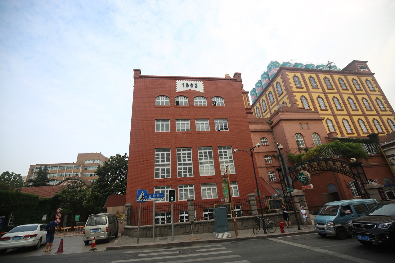 青島啤酒廠早期建筑位于市北區(qū)登州路56號(hào)青島啤酒廠內(nèi),占地面積 15000 多平方米。青島啤酒廠始建于1903年(清光緒二十九年),時(shí)稱:德國(guó)啤酒廠,為英德啤酒釀業(yè)公司建造,由德國(guó)漢堡F.H.施密特公司施工興建。德國(guó)青年派風(fēng)格,三段式建筑,共兩幢樓房,為當(dāng)時(shí)綜合辦公和釀造生產(chǎn)所用。西側(cè)綜合辦公樓分為A樓和B樓。A樓為磚石結(jié)構(gòu)2層樓房,建筑面積150平方米,花崗巖墻基,紅磚清水墻,紅瓦斜坡屋面,室內(nèi)木構(gòu)件均由簡(jiǎn)單雕刻;B樓3層樓房,亦為磚石結(jié)構(gòu),建筑面積765平方米,紅花崗巖墻基,紅磚清水墻立面,斜坡屋頂。東面釀造生產(chǎn)車間亦為紅色建筑,紅色廠房是青島市至今唯一一座保存完整的德國(guó)工業(yè)建筑。2003年8月15日,利用原有建筑及生產(chǎn)流水線興建的青島啤酒博物館正式對(duì)外開放,館內(nèi)陳列著大量具有較高文物價(jià)值的展品,包括生產(chǎn)用的中國(guó)最早的糖化鍋、煮沸鍋、濾過槽、發(fā)酵池、1896年德國(guó)西門子電機(jī)等老設(shè)備,展館充分利用百年德國(guó)建筑、設(shè)備,將百年青啤發(fā)展歷程展現(xiàn)出來(lái)。