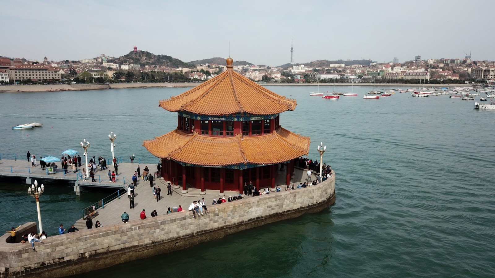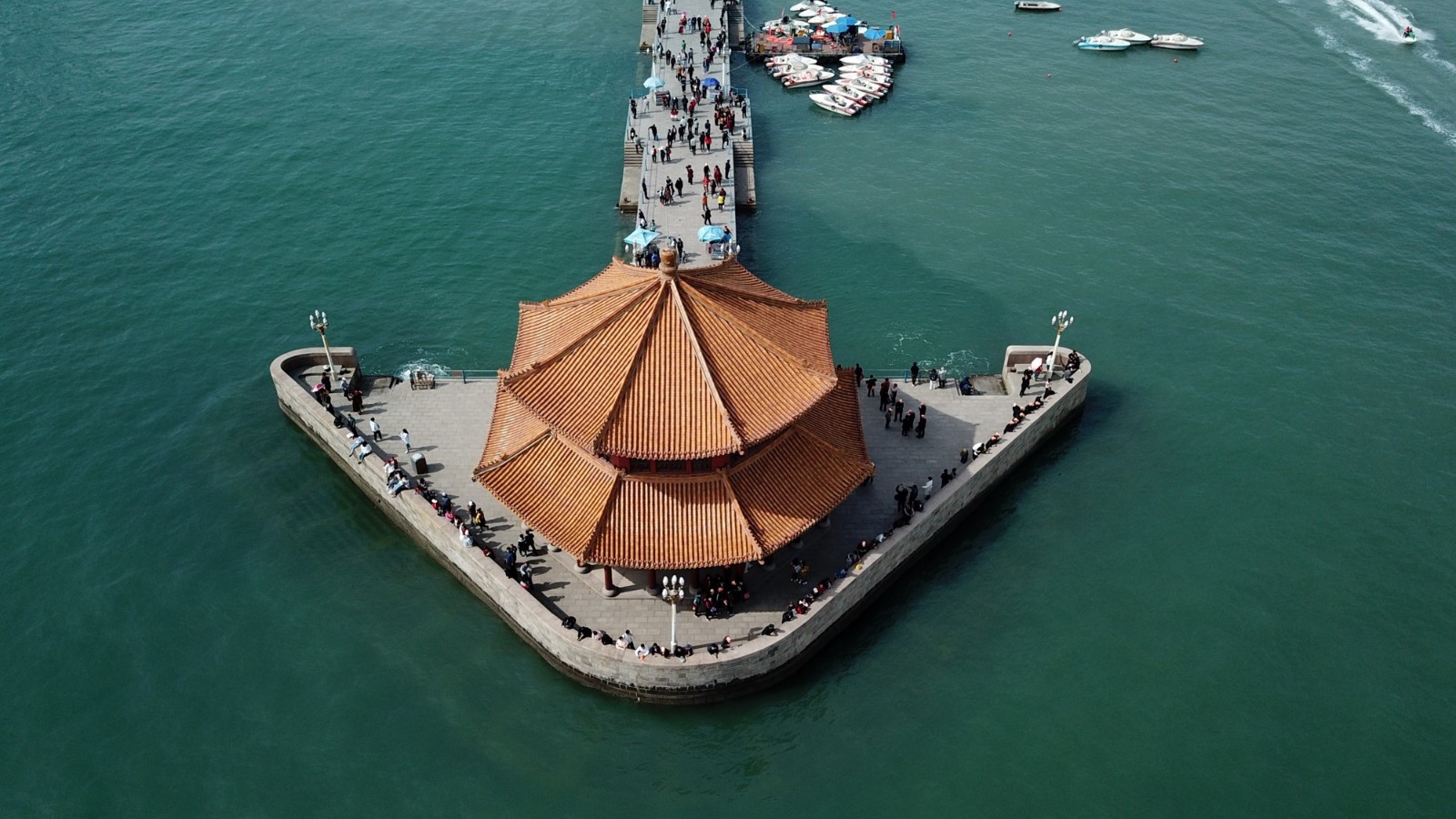 棧橋及回瀾閣位于市南區(qū)太平路10號棧橋公園內(nèi)。建筑面積354.12平方米,上覆黃色琉璃瓦,四周有24根圓形亭柱,閣內(nèi)有二層圓環(huán)形廳堂,中央有34級螺旋階梯,可盤旋登上二樓。清朝光緒十七年(1891年)五月,登州鎮(zhèn)總兵章高元奉調(diào)率四營兵力移駐青島。1892年,在前海搭建一座鐵木結(jié)構(gòu)并以木鋪面的棧橋,長約200米,寬10米,石基灰面。德國侵占青島后,1901年5月又對棧橋加以改建,在橋面鋪設(shè)輕便鐵軌并改為貨運碼頭。橋身延長至350米,北端改為石砌結(jié)構(gòu)。1931年9月,青島市政當局擴建棧橋。橋身延長至440米,橋面提高0.5米。并在橋南端增建三角形防波堤,堤內(nèi)建有民族風格的雙層飛檐八角亭閣,定名回瀾閣。