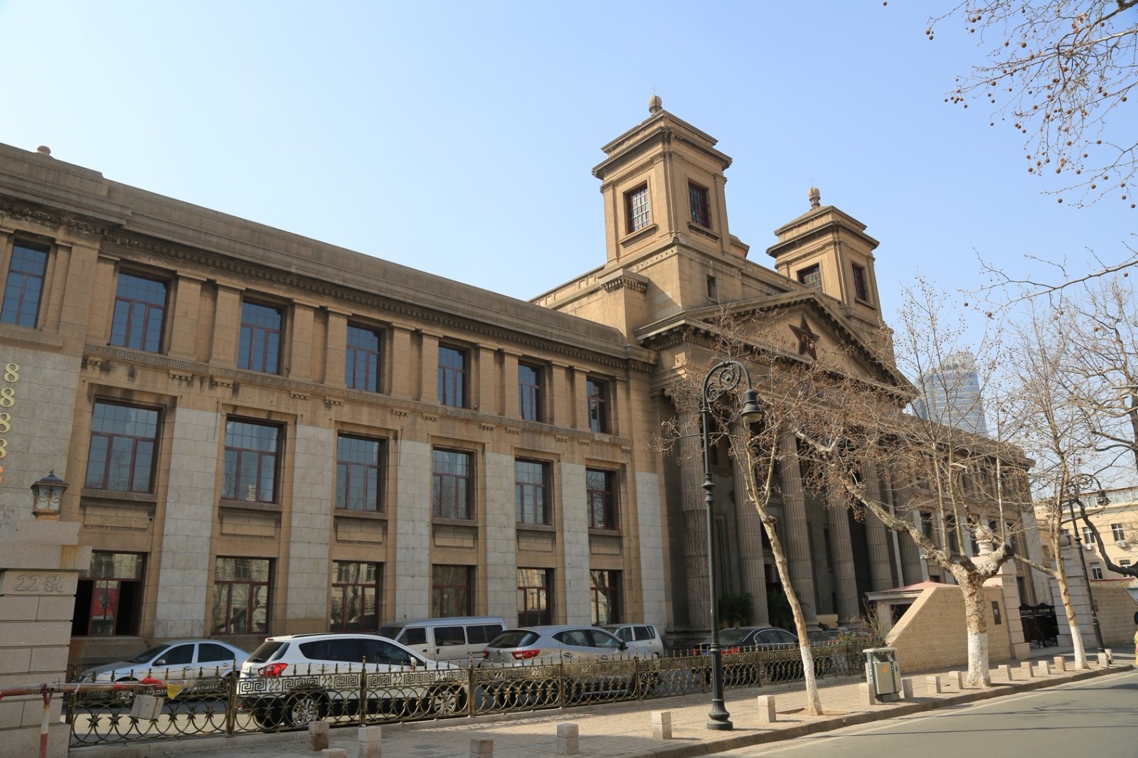青島取引所舊址,位于市北區(qū)館陶路22號。仿歐式商業(yè)古典風格建筑。日本建筑師設計,鋼筋混凝土結構,建筑面積約1500平方米。初建為證券、紗布、土產、錢鈔四個交易市場。平面呈田字形,地上三層,地下一層,花崗巖砌基及墻身四角,屋面平頂。正門東向,中軸線對稱。主體部分為三層高的科林新廊柱,山花上部分列2個小塔樓,塔樓中間偏后為一小彎頂。兩翼的一、二層為矩形壁柱,第三層為雙柱式壁柱,室內采用西方古典手法裝飾,建筑具有文藝復興建筑風格。