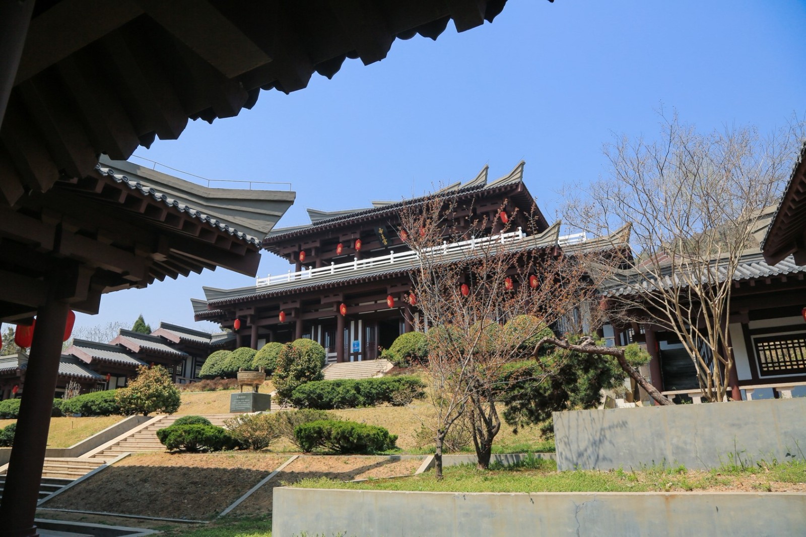 瑯琊臺遺址位于瑯琊山上。東、南、北三面瀕臨黃海,西面連通陸地,有盤山公路直達臺頂,山下有公路可連接桃(園)張(家樓)公路通往各地。臺陽坡緩,陰坡陡,從東向西逐漸隆起,形成東西長約3公里,南北寬約1.96公里,東低西高、東西走向的多道山梁和主山梁。臺基位于主山梁東側,向西過山口與爭高山對峙。臺頂部寬闊平敞,周長150余米,臺基(含山體)面積為5.88平方公里。主峰海拔高度為183.4米。