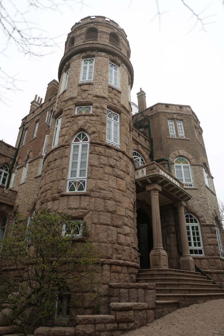 該建筑建于市南區(qū)黃海路18號(hào)臨海岸岬角部位,地勢突兀,三面臨海,位置極佳。這座城堡式的別墅建筑現(xiàn)在被人們稱作“花石樓”,是今天八大關(guān)最著名的建筑。