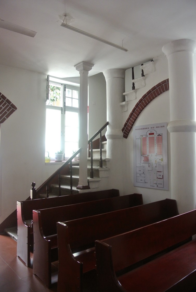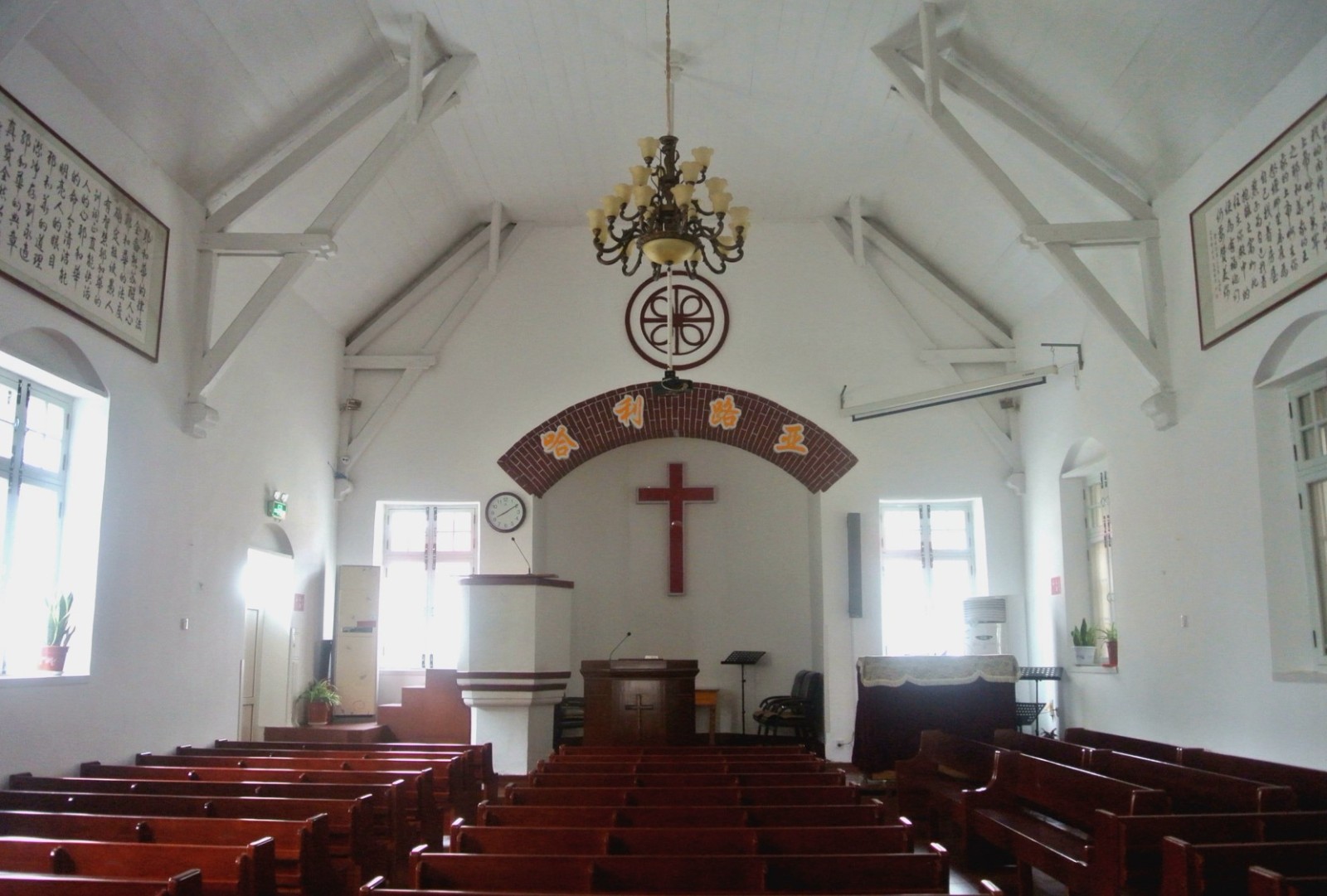 教堂主建筑為一層,石砌基礎,紅磚紅瓦,在主入口頂部設計處理為略高起的山墻。建筑主入口處為二層結構,石質樓梯,木質地板,堂頂建有鐘樓一座。堂內可容納 200余人,在教堂后院另有房屋多間,依此作為高等教會學堂,招收附近村莊的學生百余人,住校學習,邵約翰任校長并兼任教會牧師。