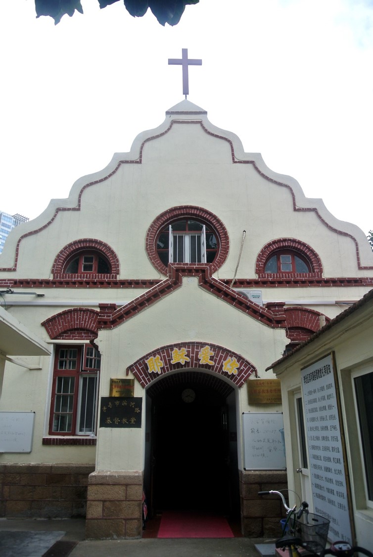 又稱“濱河路基督教堂”,位于李滄區(qū)李村街道辦事處濱河路1183號。1897年,德國基督教信義會(亦稱路德會),派遣傳教士昆祚等來青傳教。1900年,昆祚、和士謙二人在李村選定建堂基地,1904年由德國傳教士邵約翰來李村主持修建完成。