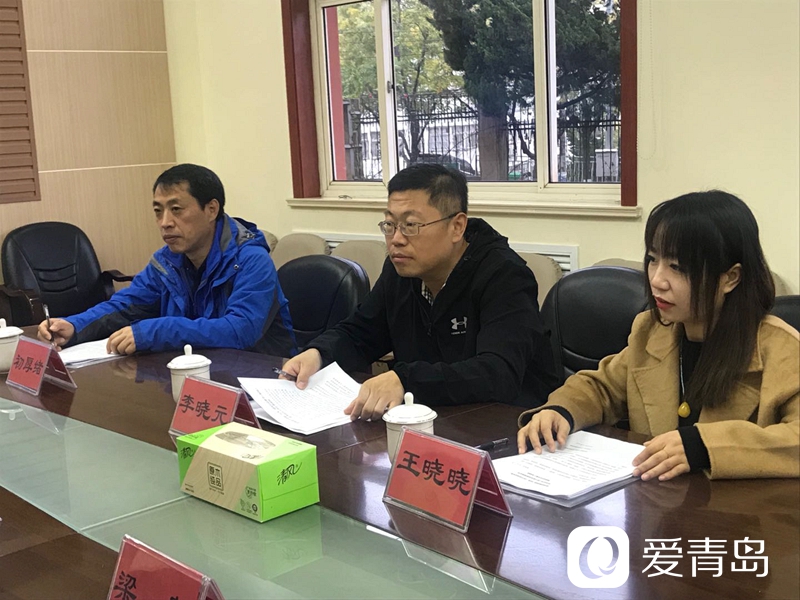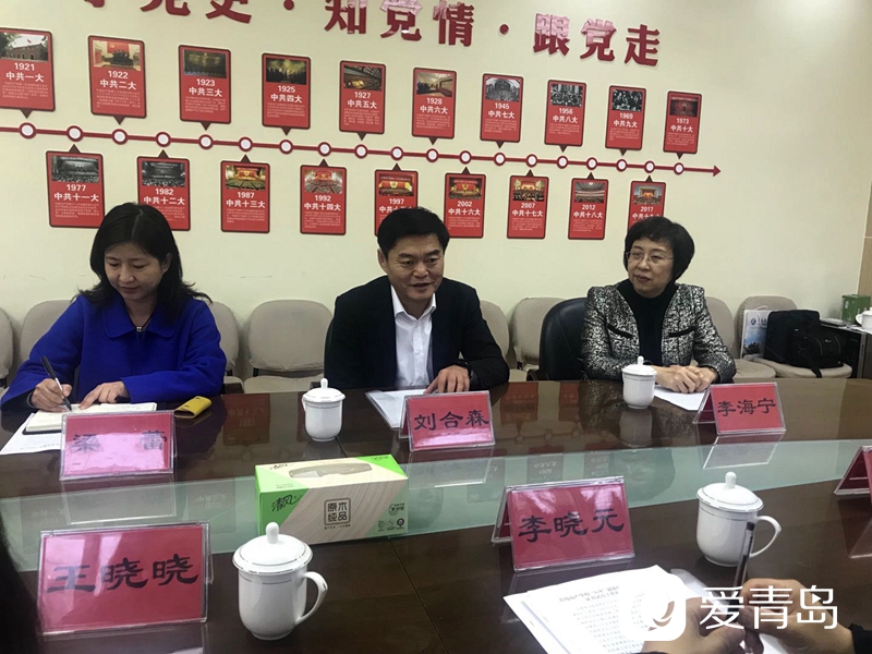 青島房產(chǎn)學(xué)校黨總支書(shū)記、校長(zhǎng)劉合森(中)介紹考點(diǎn)情況